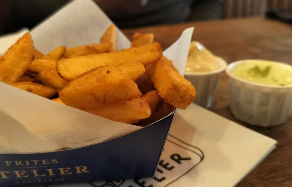 We stop at a traditional friterie where you taste real Belgian fries—double fried, golden, crispy, and served with two authentic sauces.