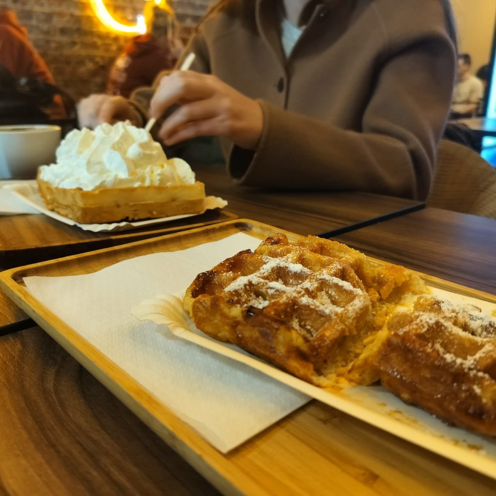 Next, enjoy two freshly baked Belgian waffles, served warm with a comforting coffee. Whether you prefer Brussels waffles or Liège waffles, you’ll taste the difference that locals love.
